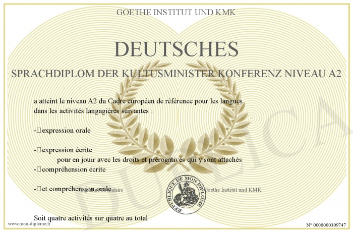 Envoyez par email votre Deutsches Sprachdiplom der Kultusminister Konferenz Niveau A2 personalisé