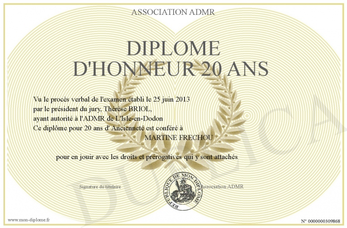 • Diplôme d'honneur 20 ans