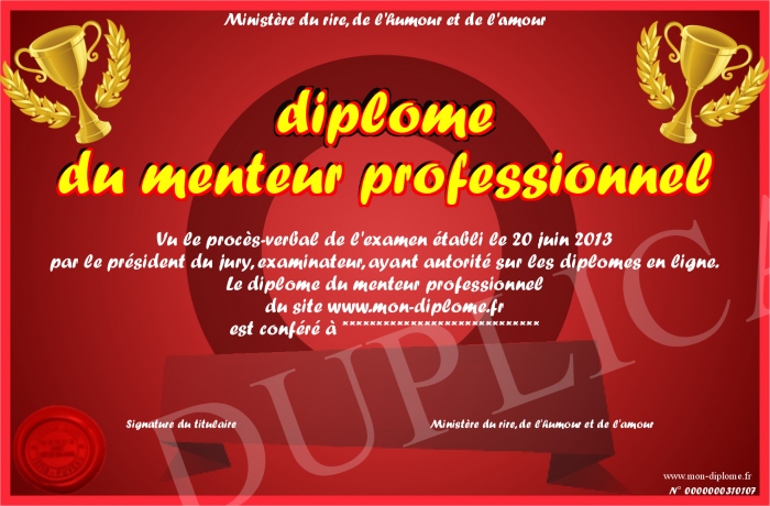 Envoyez par email votre diplome du menteur professionnel personalisé