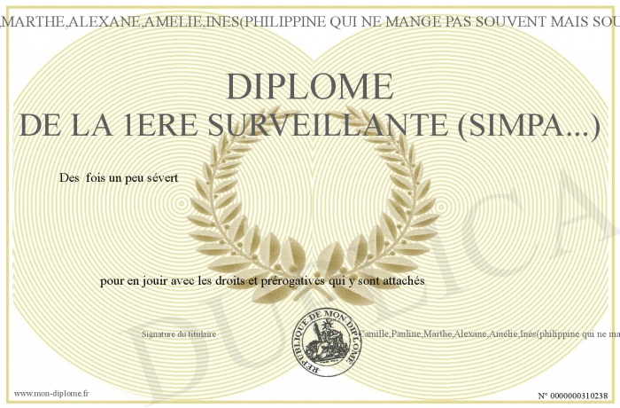 Envoyez par email votre Diplome de la 1ere surveillante (simpa...) personalisé