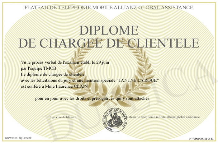 Envoyez par email votre diplôme de chargée de clientèle personalisé