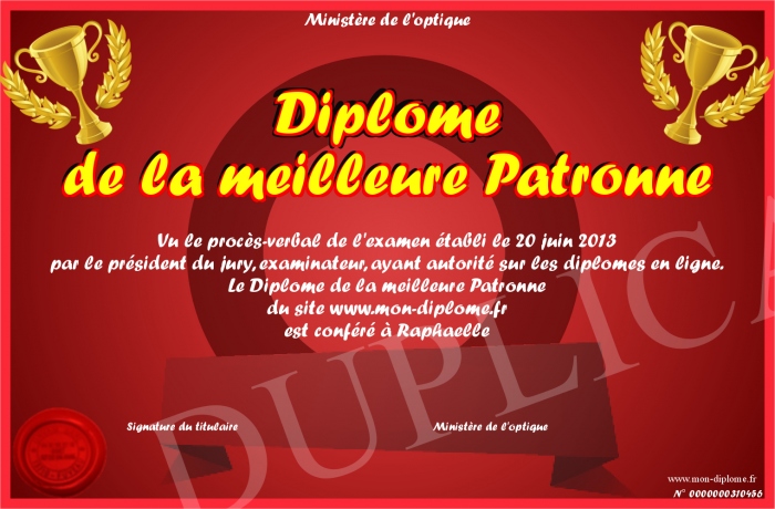 Envoyez par email votre Diplome de la meilleure Patronne personalisé