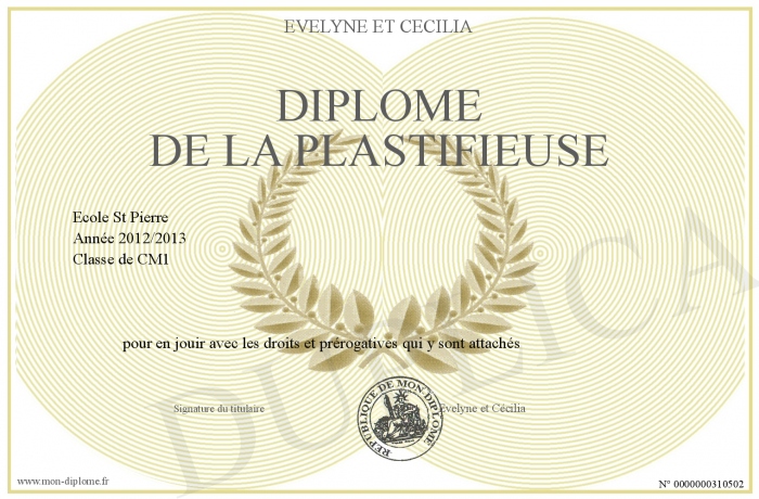 Envoyez par email votre Diplôme de la plastifieuse personalisé