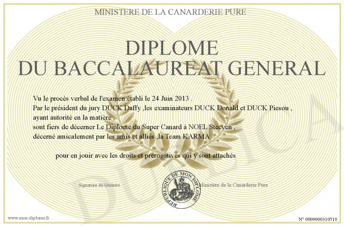 Envoyez par email votre Diplôme du baccalaureat général personalisé