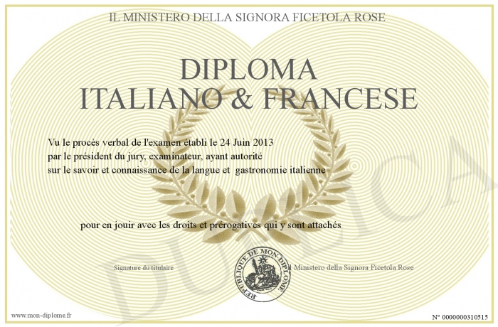 Envoyez par email votre Diploma Italiano & Francese personalisé