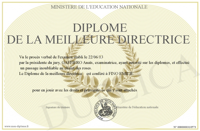 Envoyez par email votre Diplôme de la meilleure directrice personalisé
