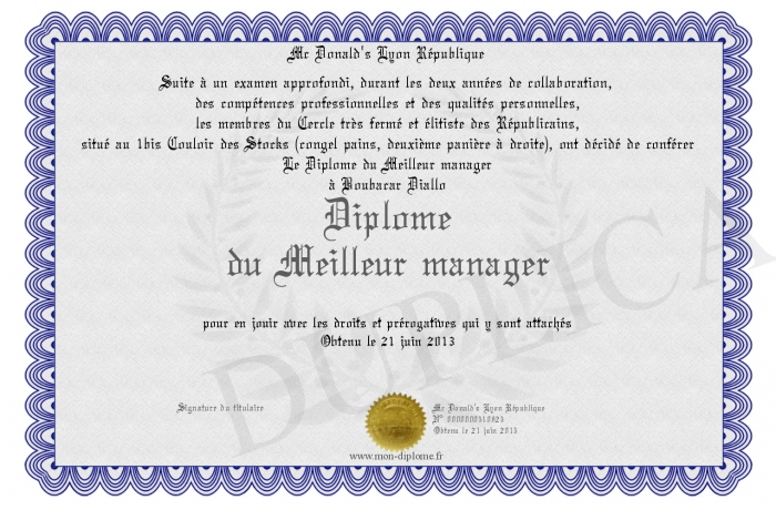 Envoyez par email votre Diplôme du Meilleur manager personalisé