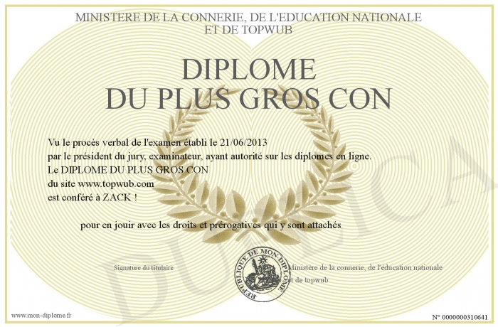 Envoyez par email votre DIPLOME DU PLUS GROS CON personalisé