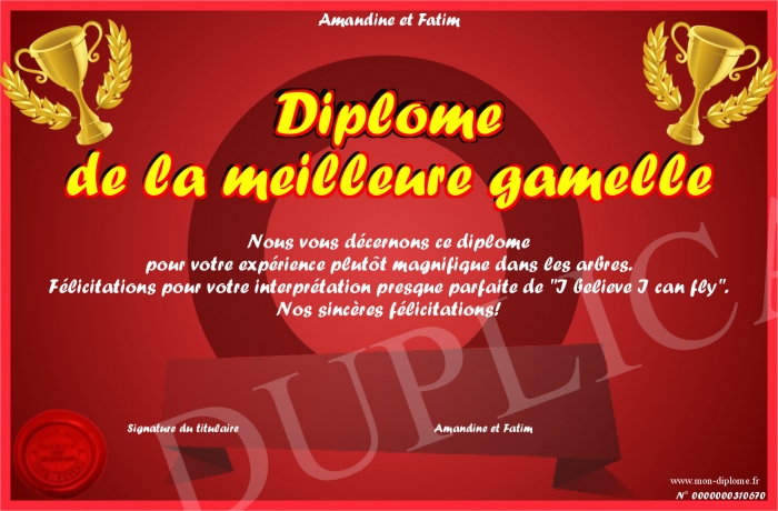 Envoyez par email votre Diplôme de la meilleure gamelle personalisé
