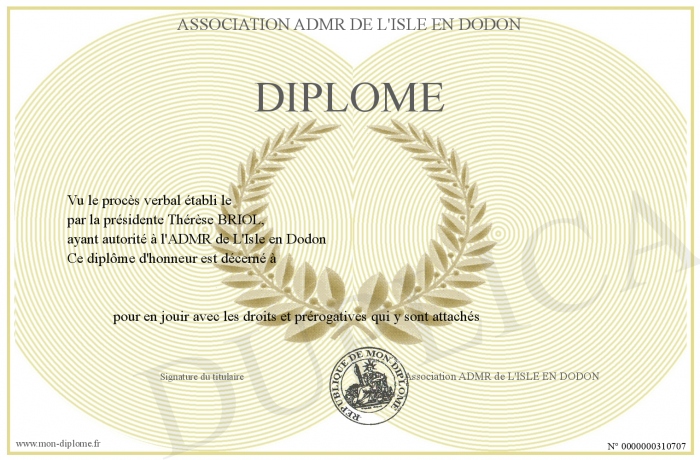 Envoyez par email votre Diplôme personalisé