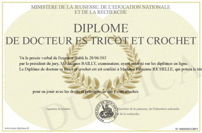 Envoyez par email votre Diplôme de docteur es tricot et crochet personalisé