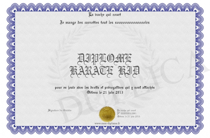 Envoyez par email votre DIPLOME KARATE KID personalisé