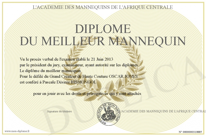 Envoyez par email votre Diplôme du MEILLEUR MANNEQUIN personalisé