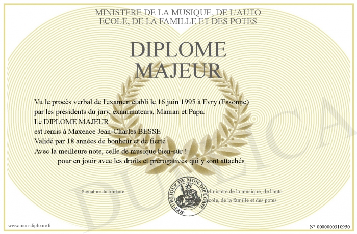 Envoyez par email votre DIPLOME MAJEUR personalisé