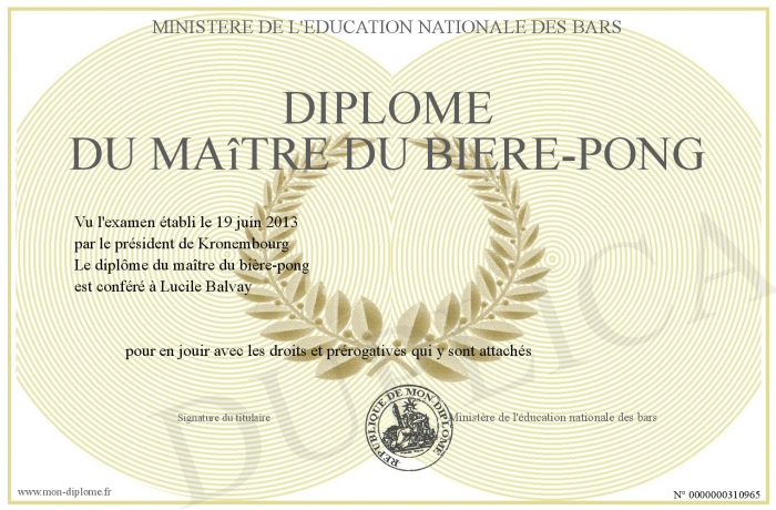 Envoyez par email votre Diplôme du maître du bière-pong personalisé