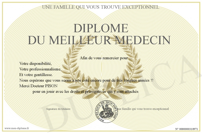 Envoyez par email votre Diplôme du meilleur medecin personalisé