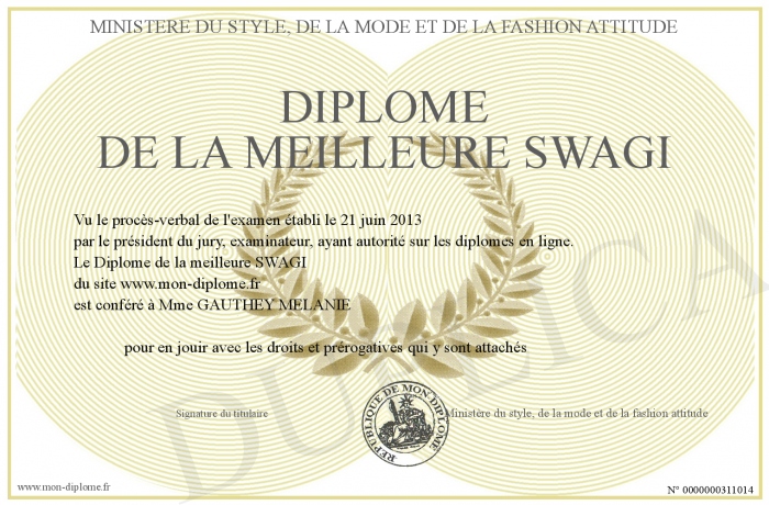 Envoyez par email votre Diplôme de la meilleure SWAGI personalisé