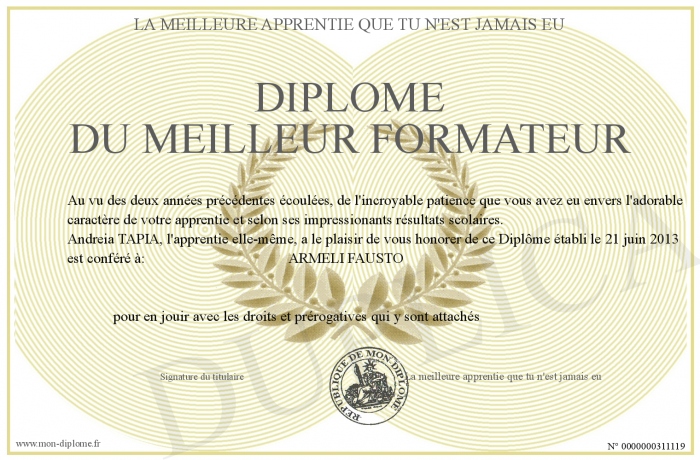 Envoyez par email votre Diplôme du Meilleur Formateur personalisé