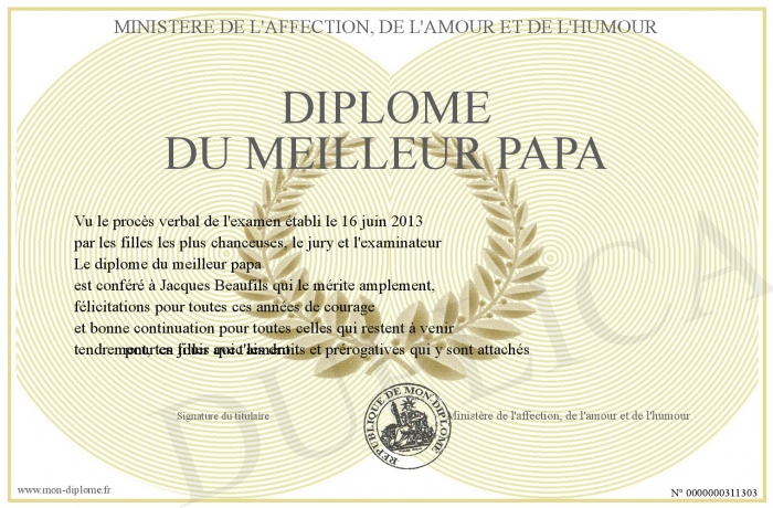 Envoyez par email votre diplôme du meilleur papa personalisé