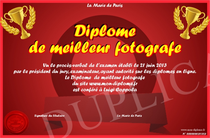 Envoyez par email votre Diplôme de meilleur fotografe personalisé