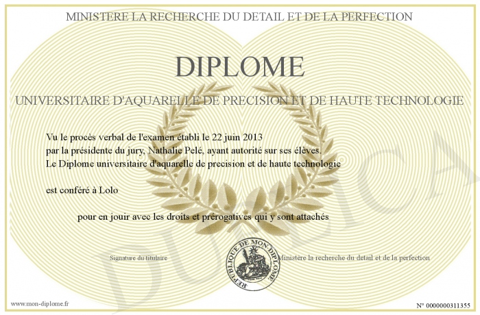 Envoyez par email votre Diplome universitaire d'aquarelle de precision et de haute technologie personalisé