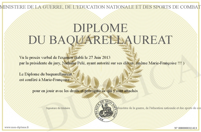 Envoyez par email votre Diplome du baquarellaureat personalisé