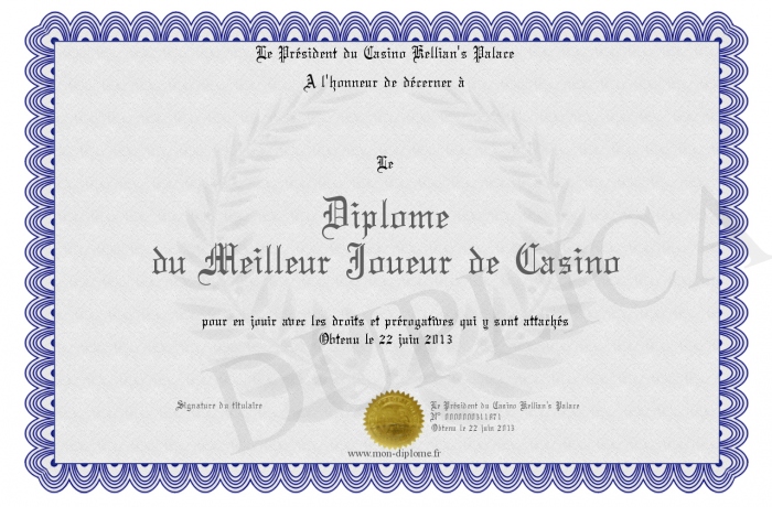 Envoyez par email votre Diplôme du Meilleur Joueur de Casino personalisé