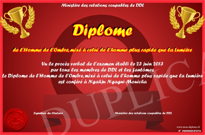 Envoyez par email votre Diplôme de l'Homme de l'Ombre, mixé à celui de l'homme plus rapide que la Lumière personalisé