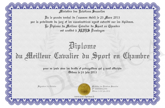 Envoyez par email votre Diplôme du Meilleur Cavalier du Sport en Chambre personalisé