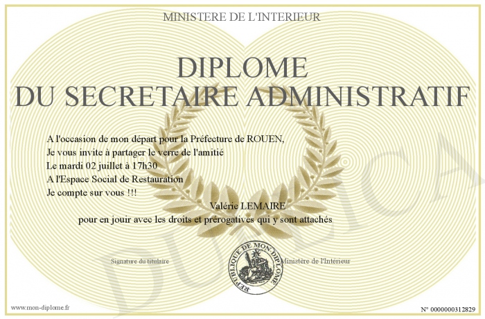 Envoyez par email votre Diplôme du Secrétaire Administratif personalisé