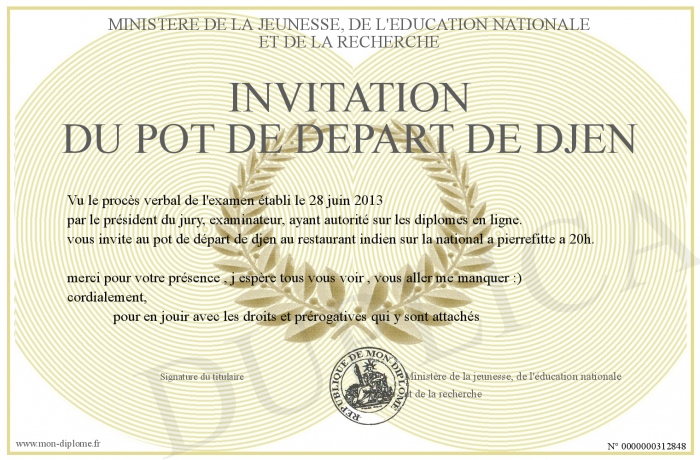 Envoyez par email votre invitation du pot de départ de djen personalisé