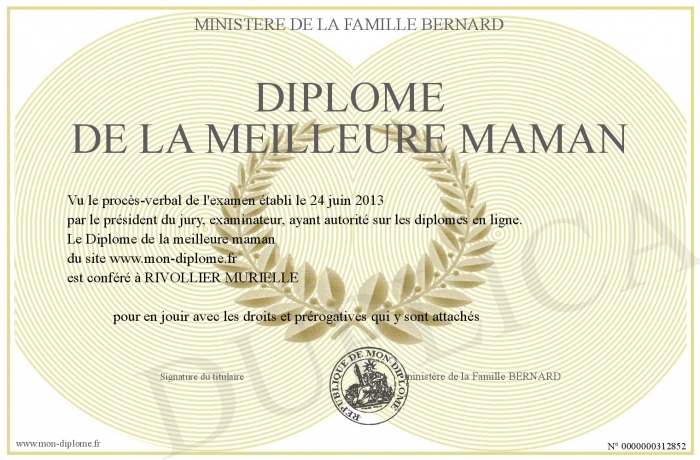 Envoyez par email votre Diplôme de la meilleure maman personalisé