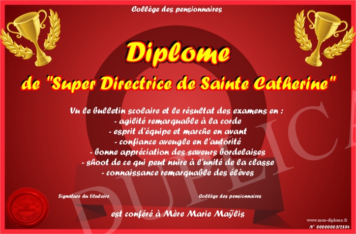 Envoyez par email votre Diplôme de -Super Directrice de Sainte Catherine- personalisé
