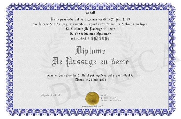 Envoyez par email votre Diplome De Passage en 6eme personalisé