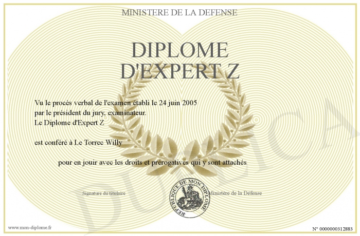 Envoyez par email votre Diplôme d'Expert Z personalisé