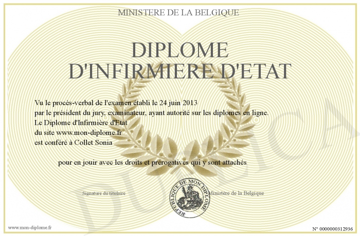 Envoyez par email votre Diplôme d'Infirmière d'Etat personalisé