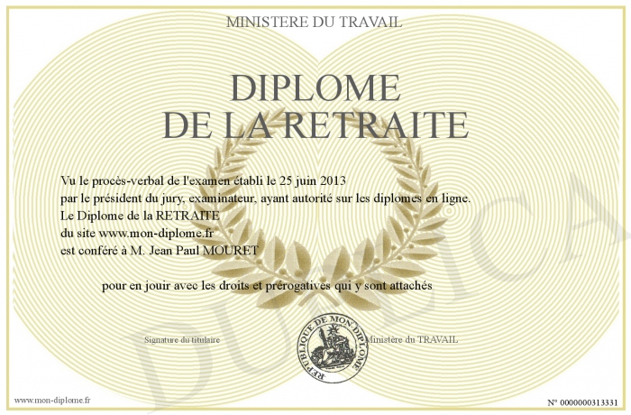 Envoyez par email votre Diplôme de la RETRAITE personalisé
