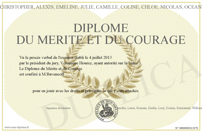 Envoyez par email votre Diplôme du Mérite et du Courage personalisé