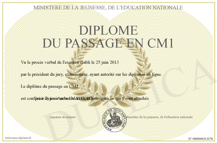 Envoyez par email votre Diplôme du passage en CM1 personalisé