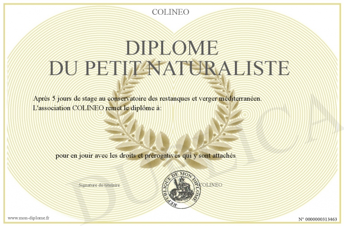 Envoyez par email votre Diplôme du Petit Naturaliste personalisé