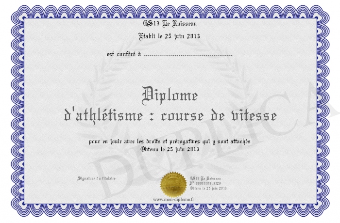 Envoyez par email votre Diplôme d'athlétisme : course de vitesse personalisé
