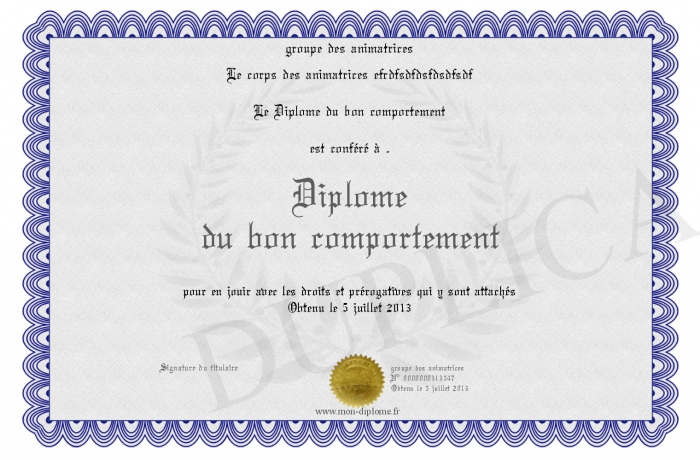 Envoyez par email votre Diplôme du bon comportement personalisé