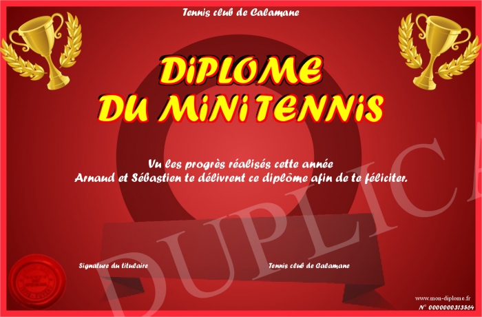 Envoyez par email votre DiPLOME DU MiNi TENNiS personalisé