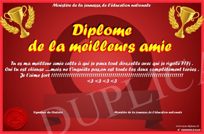 Envoyez par email votre Diplôme de la meilleurs amie personalisé