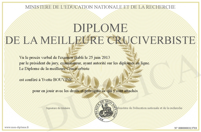 Envoyez par email votre Diplôme de la meilleure Cruciverbiste personalisé