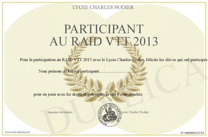 Envoyez par email votre Participant au RAID VTT 2013 personalisé
