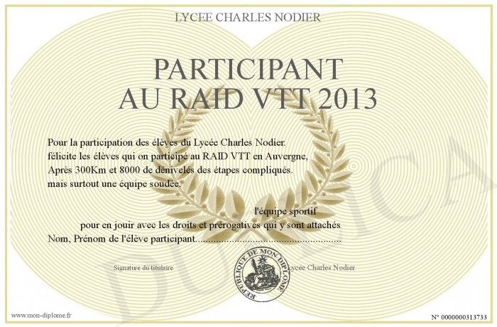 Envoyez par email votre Participant au RAID VTT 2013 personalisé