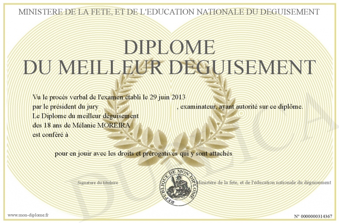 Envoyez par email votre Diplôme du meilleur déguisement personalisé