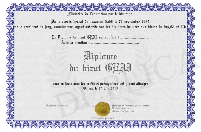 Envoyez par email votre Diplôme du bizut GEII personalisé