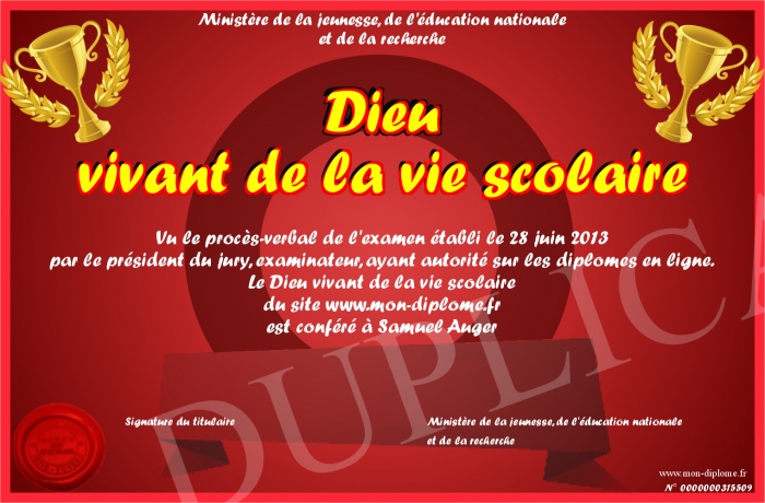 Envoyez par email votre Dieu vivant de la vie scolaire personalisé